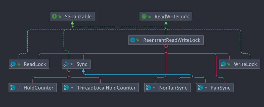 和 ReentrantLock 一样,ReentrantReadWriteLock 底层也是基于 AQS 实现的。