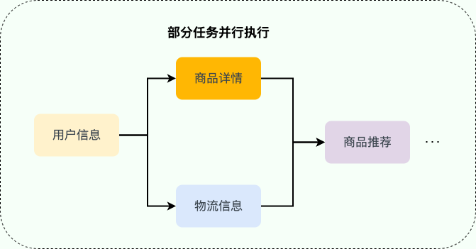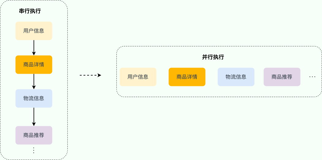 如果是串行(按顺序依次执行每个任务)执行的话,接口的响应速度会非常慢。考虑到这些任务之间有大部分都是 无前后顺序关联 的,可以 并行执行 ,就比如说调用获取商品详情的时候,可以同时调用获取物流信息。通过并行执行多个任务的方式,接口的响应速度会得到大幅优化。