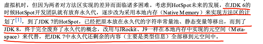 《Java 虚拟机规范》只是规定了有方法区这么个概念和它的作用,方法区到底要如何实现那就是虚拟机自己要考虑的事情了。也就是说,在不同的虚拟机实现上,方法区的实现是不同的。