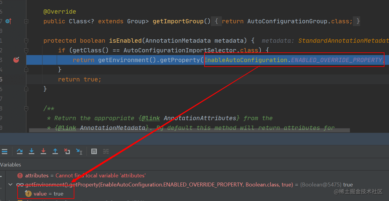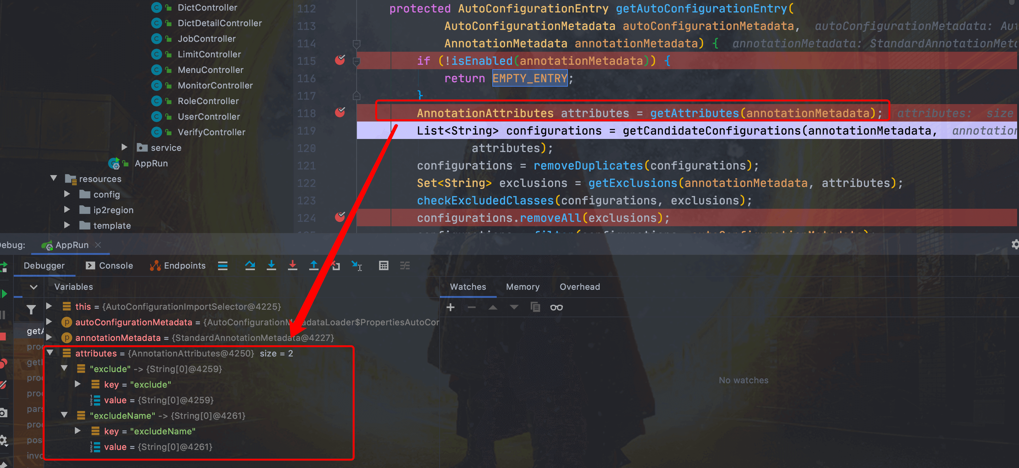 AutoConfigurationImportSelector.AutoConfigurationEntry autoConfigurationEntry = this.getAutoConfigurationEntry(autoConfigurationMetadata, annotationMetadata);